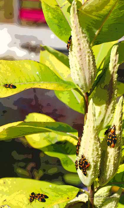 Tags: large milkweed bugs, milkweed, summer